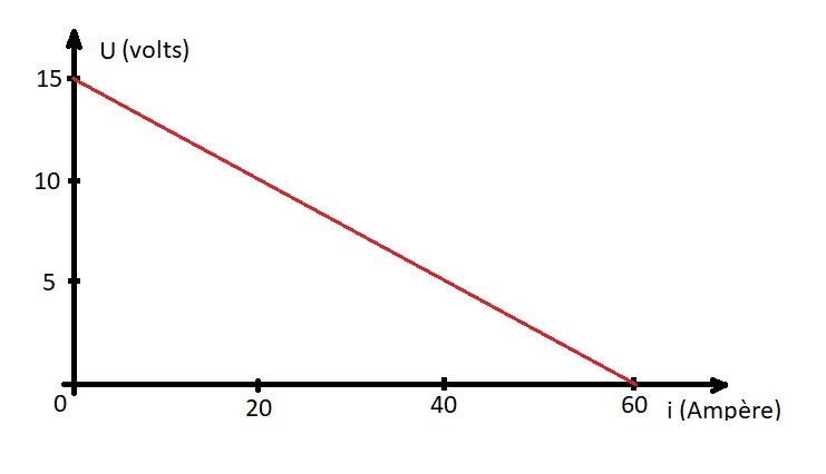 Exercício de eletricidade: Gráfico de tensão por corrente elétrica de um gerador – corrente de curto-circuito
